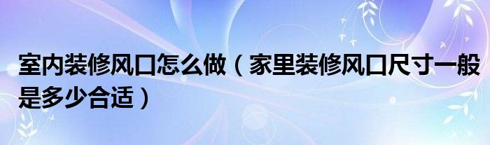 导读 大家好,精选小编来为大家解答以上的问题。室内装修风口怎么做,家里装修风口尺寸一般是多少合适很多人还不知道,现在让我们一起来看看吧!