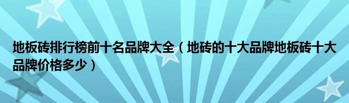 地板砖排行榜前十名品牌大全(地砖的十大品牌地板砖十大品牌价格多少)