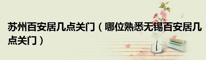 苏州百安居几点关门(哪位熟悉无锡百安居几点关门)