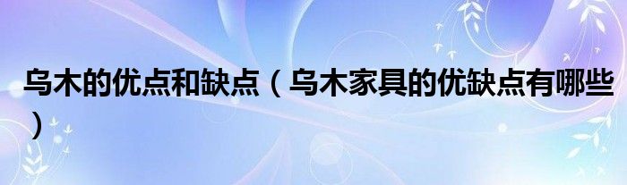 乌木的优点和缺点(乌木家具的优缺点有哪些)