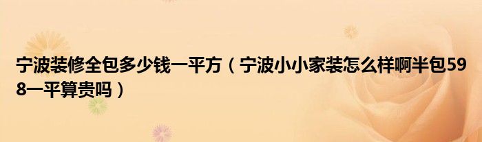 宁波装修全包多少钱一平方(宁波小小家装怎么样啊半包598一平算贵吗)