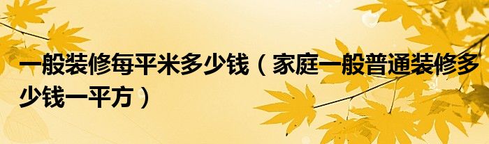 一般装修每平米多少钱(家庭一般普通装修多少钱一平方)