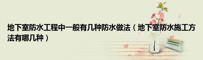 导读 大家好,精选小编来为大家解答以上的问题。地下室防水工程中一般有几种防水做法,地下室防水施工方法有哪几种很多人还不知道,现在让我们一