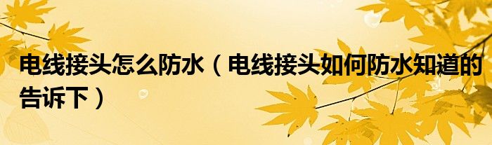 电线接头怎么防水(电线接头如何防水知道的告诉下)