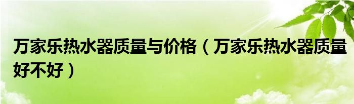 万家乐热水器质量与价格(万家乐热水器质量好不好)