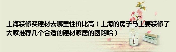 上海装修买建材去哪里性价比高(上海的房子马上要装修了大家推荐几个合适的建材家居的团购哈)