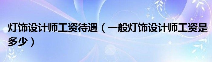 灯饰设计师工资待遇(一般灯饰设计师工资是多少)