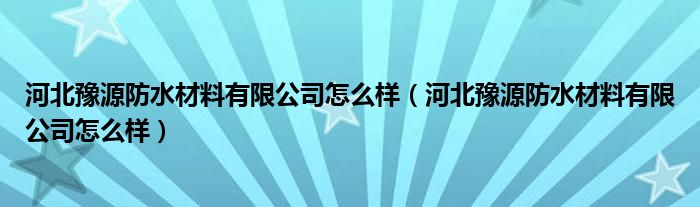 河北豫源防水材料有限公司怎么样(河北豫源防水材料有限公司怎么样)