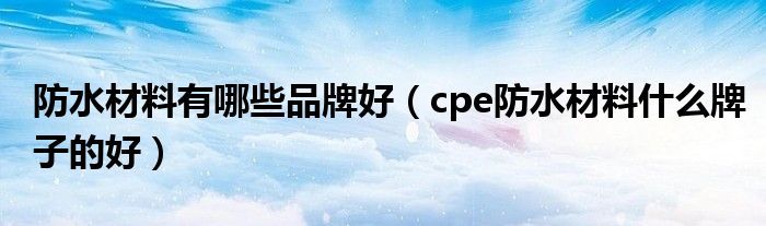 导读 大家好,精选小编来为大家解答以上的问题。防水材料有哪些品牌好,cpe防水材料什么牌子的好很多人还不知道,现在让我们一起来看看吧!1、以