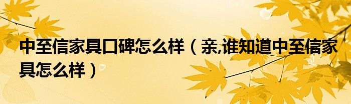 中至信家具口碑怎么样(亲,谁知道中至信家具怎么样)