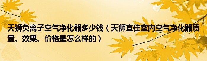 导读 大家好,精选小编来为大家解答以上的问题。天狮负离子空气净化器多少钱,天狮宜佳室内空气净化器质量、效果、价格是怎么样的很多人还不知道