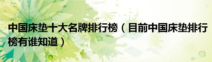 导读 大家好,精选小编来为大家解答以上的问题。中国床垫十大名牌排行榜,目前中国床垫排行榜有谁知道很多人还不知道,现在让我们一起来看看吧!