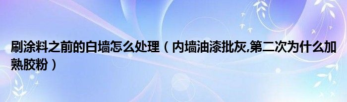 大家好,精选小编来为大家解答以上的问题。刷涂料之前的白墙怎么处理,内墙油漆批灰,第二次为什么加熟胶粉很多人还不知道,现在让我们一起来看看吧!