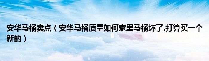 安华马桶卖点(安华马桶质量如何家里马桶坏了,打算买一个新的)