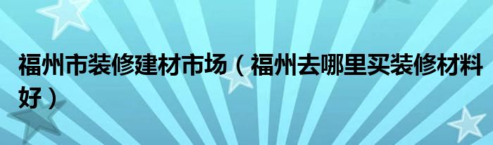 大家好,精选小编来为大家解答以上的问题。福州市装修建材市场,福州去哪里买装修材料好很多人还不知道,现在让我们一起来看看吧!