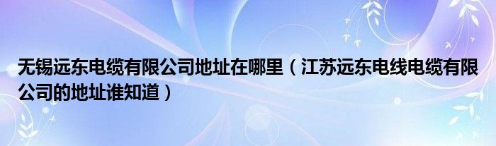 无锡远东电缆有限公司地址在哪里(江苏远东电线电缆有限公司的地址谁知道)