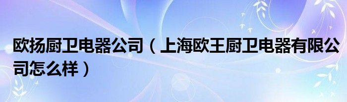 导读 大家好,精选小编来为大家解答以上的问题。欧扬厨卫电器公司,上海欧王厨卫电器有限公司怎么样很多人还不知道,现在让我们一起来看看吧!1