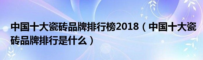 导读 大家好,精选小编来为大家解答以上的问题。中国十大瓷砖品牌排行榜2018,中国十大瓷砖品牌排行是什么很多人还不知道,现在让我们一起来看看