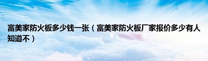 富美家防火板多少钱一张(富美家防火板厂家报价多少有人知道不)