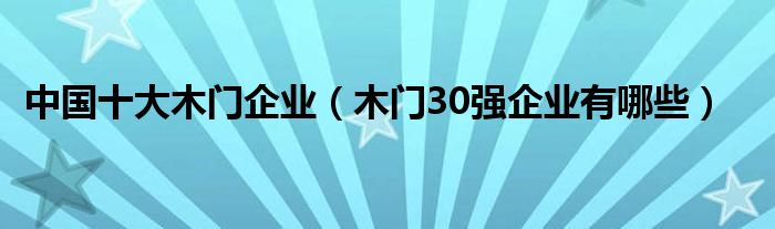 导读 大家好,精选小编来为大家解答以上的问题。中国十大木门企业,木门30强企业有哪些很多人还不知道,现在让我们一起来看看吧!1、30强?这让