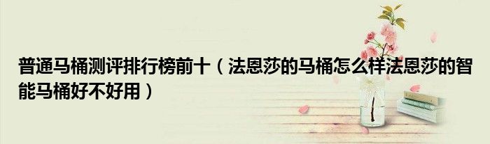 导读 大家好,精选小编来为大家解答以上的问题。普通马桶测评排行榜前十,法恩莎的马桶怎么样法恩莎的智能马桶好不好用很多人还不知道,现在让我