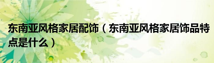 导读 大家好,精选小编来为大家解答以上的问题。东南亚风格家居配饰,东南亚风格家居饰品特点是什么很多人还不知道,现在让我们一起来看看吧!1