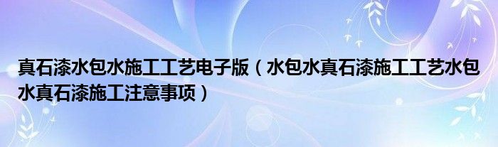 真石漆水包水施工工艺电子版(水包水真石漆施工工艺水包水真石漆施工注意事项)