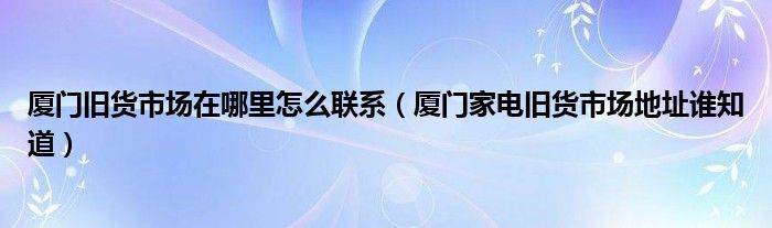 厦门旧货市场在哪里怎么联系(厦门家电旧货市场地址谁知道)