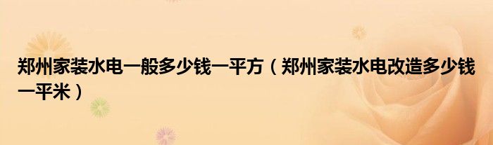 郑州家装水电一般多少钱一平方(郑州家装水电改造多少钱一平米)