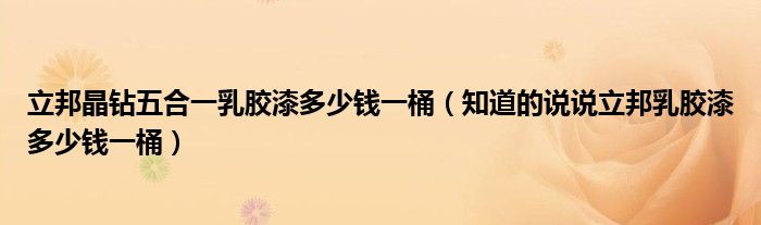 立邦晶钻五合一乳胶漆多少钱一桶(知道的说说立邦乳胶漆多少钱一桶)