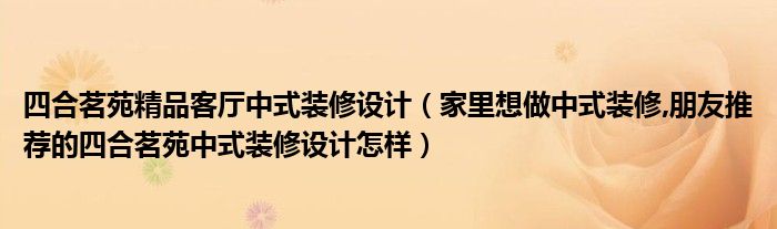 导读 大家好,精选小编来为大家解答以上的问题。四合茗苑精品客厅中式装修设计,家里想做中式装修,朋友推荐的四合茗苑中式装修设计怎样很多人还
