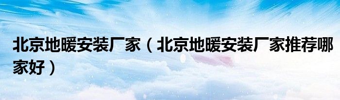 北京地暖安装厂家(北京地暖安装厂家推荐哪家好)