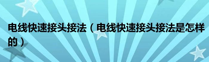 大家好,精选小编来为大家解答以上的问题。电线快速接头接法,电线快速接头接法是怎样的很多人还不知道,现在让我们一起来看看吧!