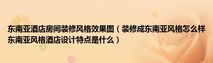 导读 大家好,精选小编来为大家解答以上的问题。东南亚酒店房间装修风格效果图,装修成东南亚风格怎么样东南亚风格酒店设计特点是什么很多人还不