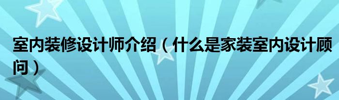 室内装修设计师介绍(什么是家装室内设计顾问)