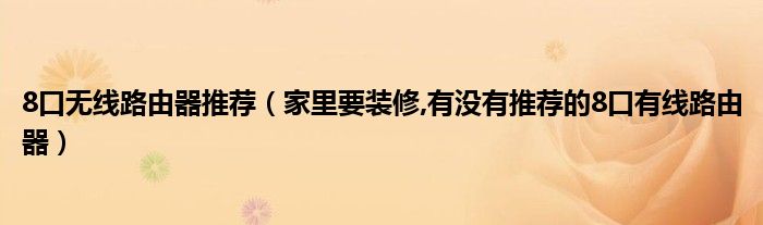 导读 大家好,精选小编来为大家解答以上的问题。8口无线路由器推荐,家里要装修,有没有推荐的8口有线路由器很多人还不知道,现在让我们一起来看