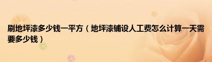 导读 大家好,精选小编来为大家解答以上的问题。刷地坪漆多少钱一平方,地坪漆铺设人工费怎么计算一天需要多少钱很多人还不知道,现在让我们一起