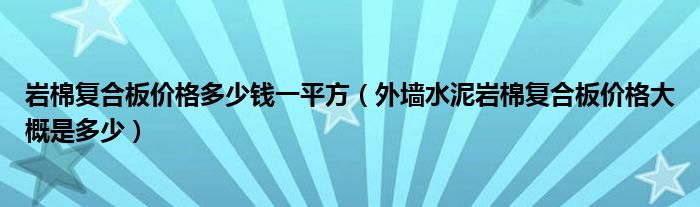 导读 大家好,精选小编来为大家解答以上的问题。岩棉复合板价格多少钱一平方,外墙水泥岩棉复合板价格大概是多少很多人还不知道,现在让我们一起