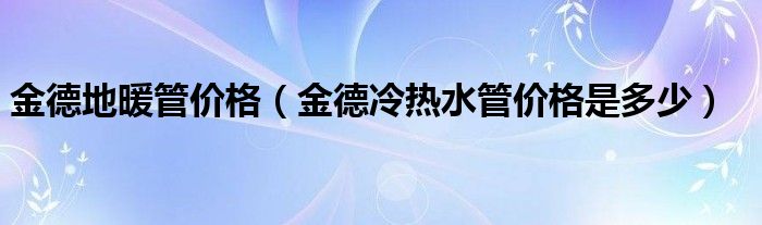 大家好,精选小编来为大家解答以上的问题。金德地暖管价格,金德冷热水管价格是多少很多人还不知道,现在让我们一起来看看吧!