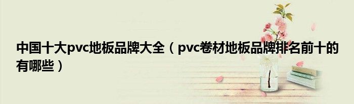 导读 大家好,精选小编来为大家解答以上的问题。中国十大pvc地板品牌大全,pvc卷材地板品牌排名前十的有哪些很多人还不知道,现在让我们一起来看