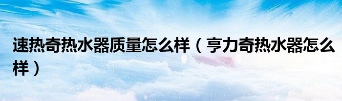 大家好,精选小编来为大家解答以上的问题。速热奇热水器质量怎么样,亨力奇热水器怎么样很多人还不知道,现在让我们一起来看看吧!