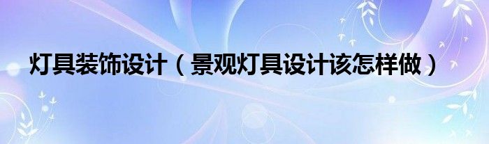 大家好,精选小编来为大家解答以上的问题。灯具装饰设计,景观灯具设计该怎样做很多人还不知道,现在让我们一起来看看吧!