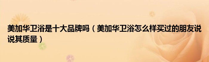 导读 大家好,精选小编来为大家解答以上的问题。美加华卫浴是十大品牌吗,美加华卫浴怎么样买过的朋友说说其质量很多人还不知道,现在让我们一起