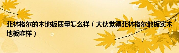 菲林格尔的木地板质量怎么样(大伙觉得菲林格尔地板实木地板咋样)