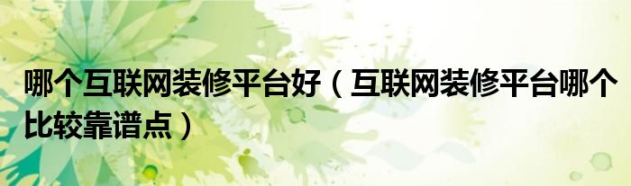 哪个互联网装修平台好(互联网装修平台哪个比较靠谱点)