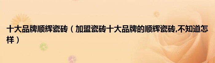 十大品牌顺辉瓷砖(加盟瓷砖十大品牌的顺辉瓷砖,不知道怎样)