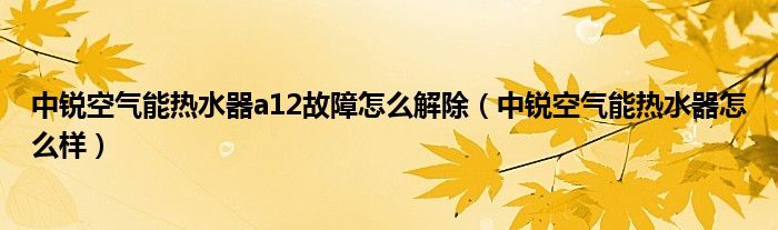 导读 大家好,精选小编来为大家解答以上的问题。中锐空气能热水器a12故障怎么解除,中锐空气能热水器怎么样很多人还不知道,现在让我们一起来看