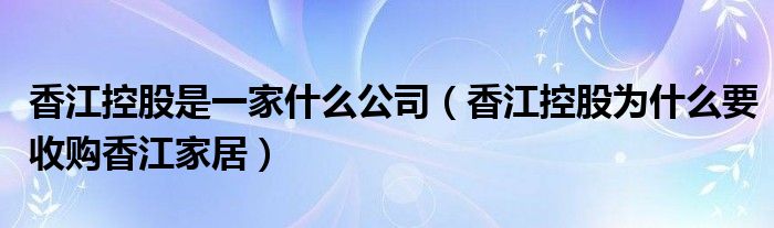 导读 大家好,精选小编来为大家解答以上的问题。香江控股是一家什么公司,香江控股为什么要收购香江家居很多人还不知道,现在让我们一起来看看吧
