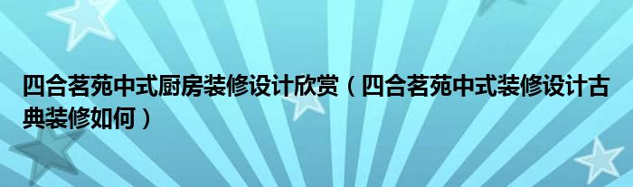 导读 大家好,精选小编来为大家解答以上的问题。四合茗苑中式厨房装修设计欣赏,四合茗苑中式装修设计古典装修如何很多人还不知道,现在让我们一