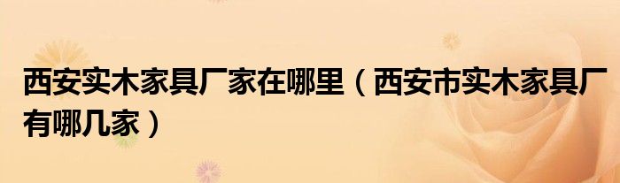 导读 大家好,精选小编来为大家解答以上的问题。西安实木家具厂家在哪里,西安市实木家具厂有哪几家很多人还不知道,现在让我们一起来看看吧!1